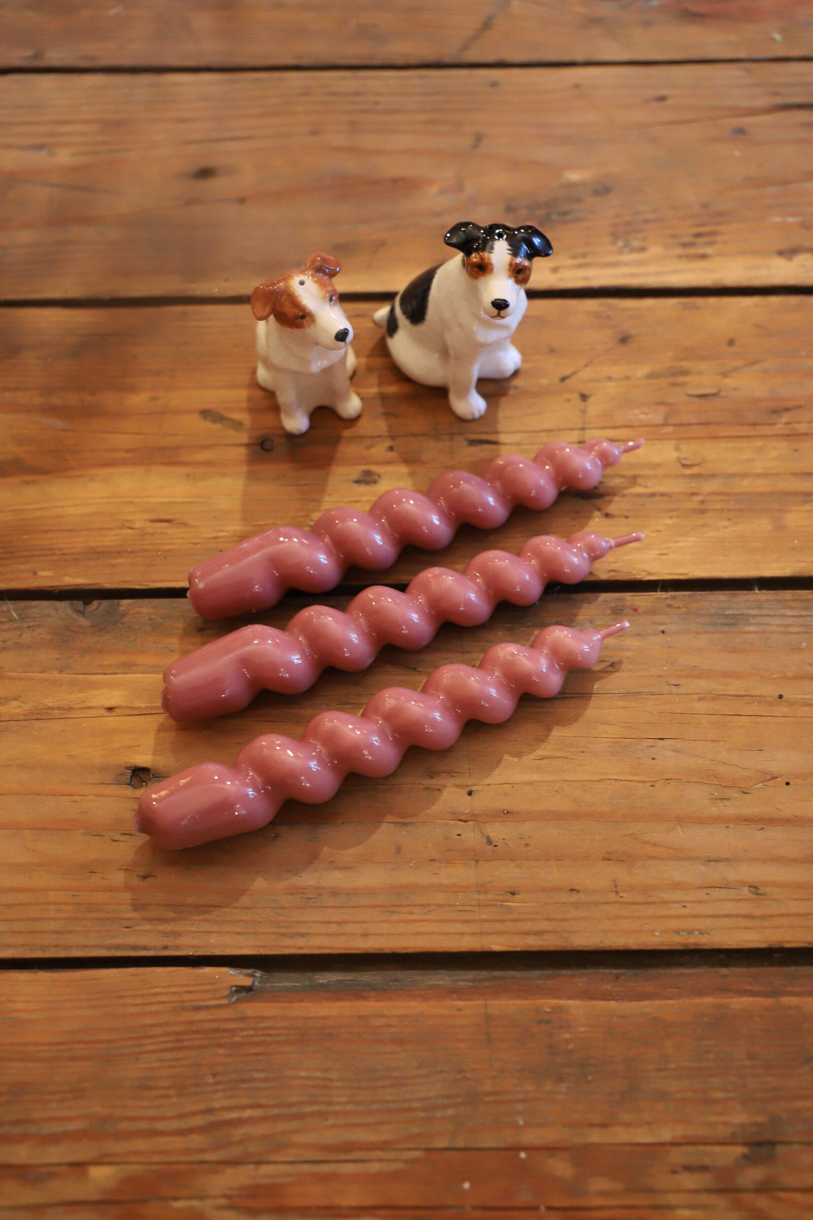 Estuche 4 velas rosa empolvado con forma espiral brillante en tono rosa, cera mineral.