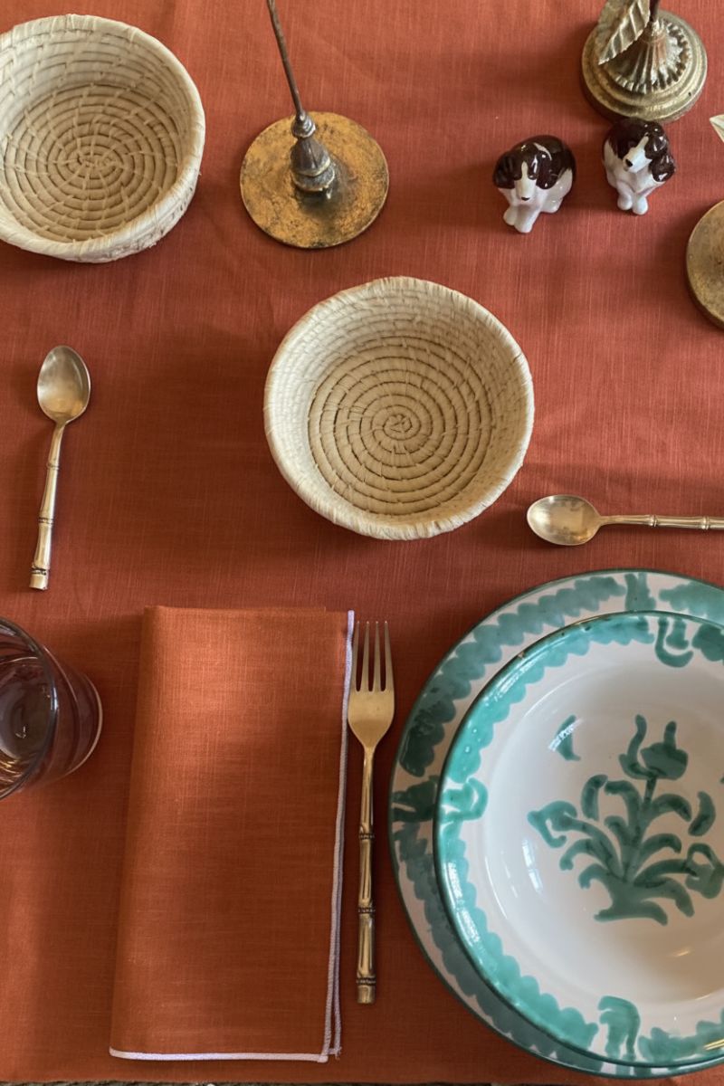 Mantel Lino Caldera, confeccionado a medida meticulosamente adornada con un festón en un cautivador tono. En la esquina, descubrirás un encantador bordado, que añade un toque de encanto y distinción a esta pieza única. Confeccionado con los más finos materiales y acabados artesanales, este mantel no solo embellecerá tu mesa, sino que también agregará un toque de personalidad y estilo a tus encuentros gastronómicos. Deja que la sofisticación del lino y el encanto del bordado te transporten a un mundo de refinamiento y exquisitez en cada comida.
