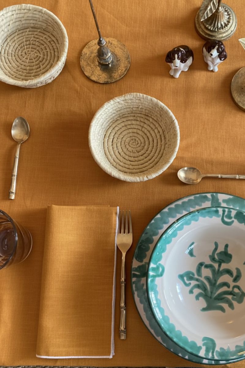 Eleva tus momentos únicos a nuevas alturas de refinamiento con nuestro mantel de lino mostaza y su encantador bordado. Es más que una pieza de mesa; es una expresión de tu gusto por lo excepcional, lo auténtico y lo bello en la vida.