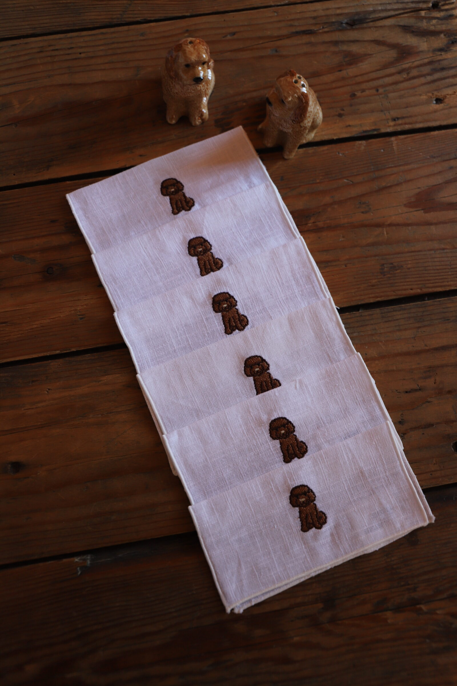 Servilletas de aperitivo con bordados de caniche. Las servilletas miden 15*15 cm abiertas.